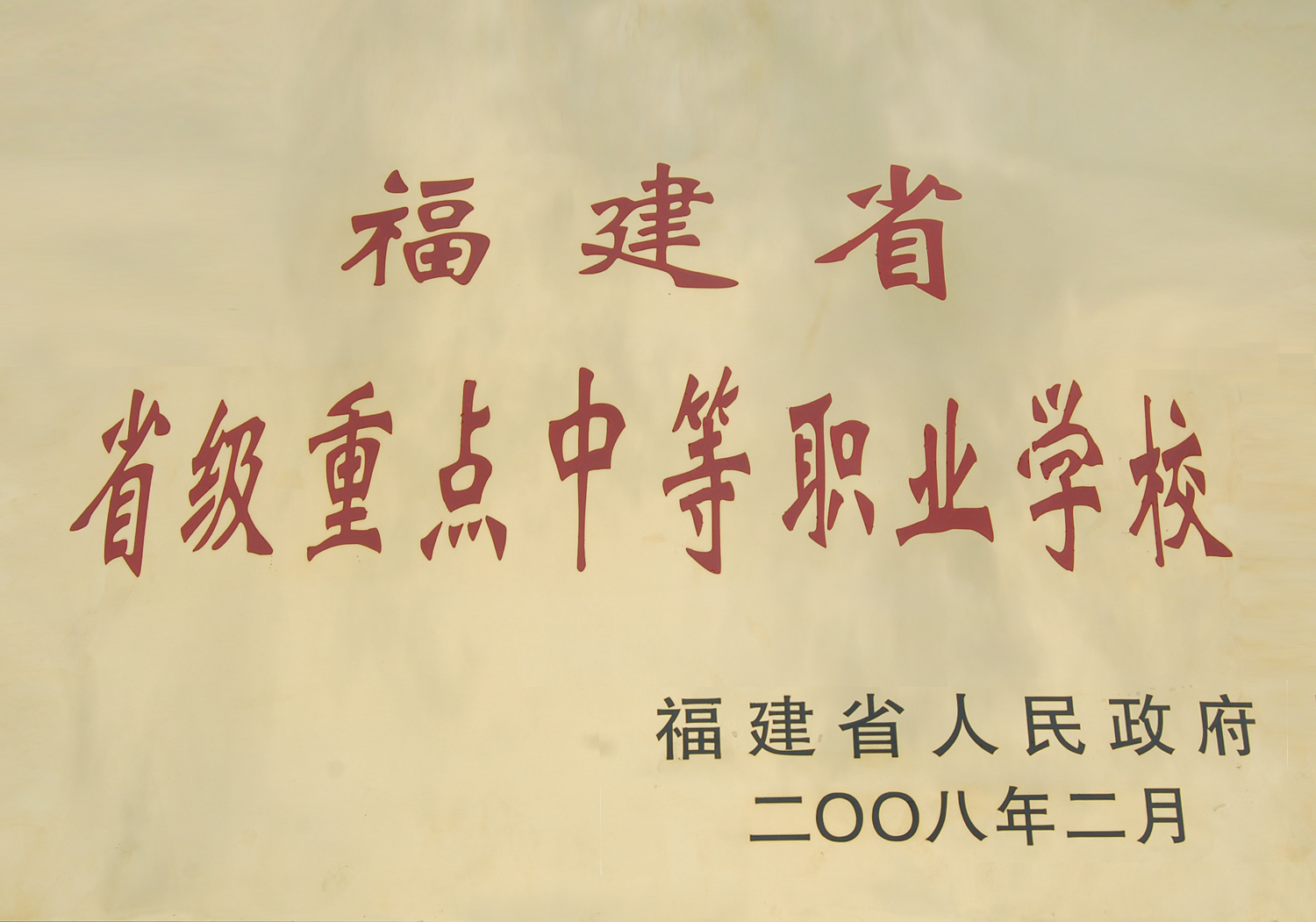 2008年02月 被评为“福建省省级重点中等职业学校”